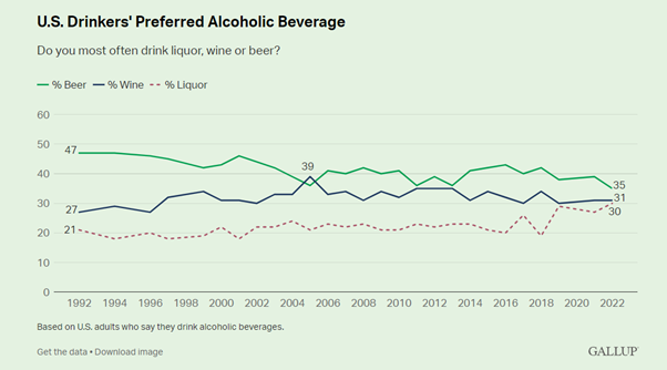 year as beer consumption, at 35%, is at its lowest level by one percentage