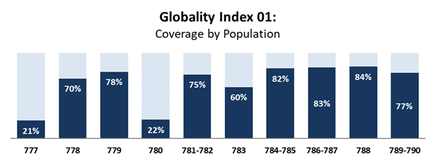 Gilani-Gallopedia's Globality Index, showing coverage of world population,