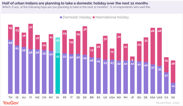 countries, shows that half (51%) of urbanites in India plan to holiday