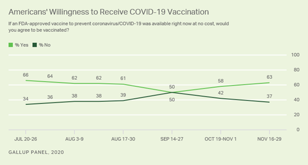 to Get COVID-19 Vaccine Ticks Up to 63% in U.S.