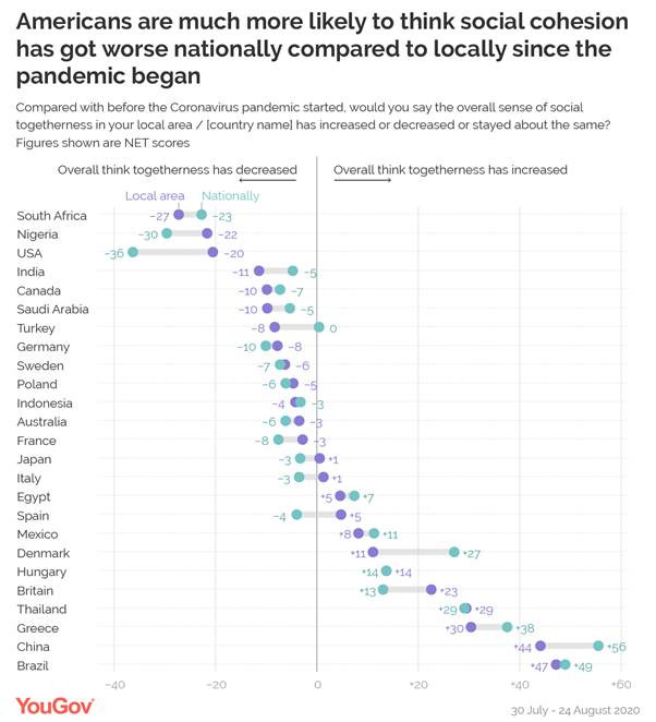 the bottom of the list, at 16%. That is not to say they feel social cohesion