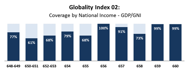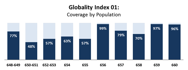showing coverage of world population, and 99 out of 100 on the world income