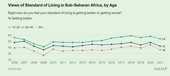 Than Half of Young Sub-Saharan Africans Saw Living Standards Improving More than half of 15-