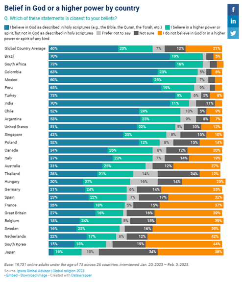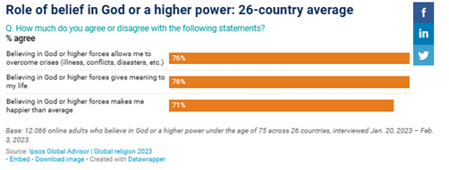 hypothesis that, as confirmed by the data of the latest Ipsos study "Global Religion 2023: Religious beliefs around the