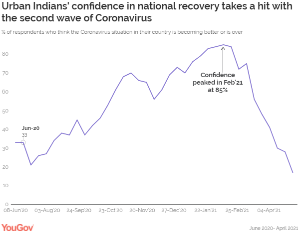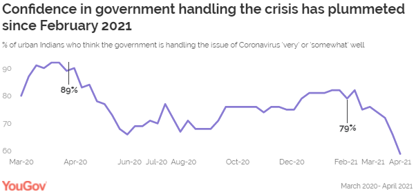 2020, This Number Has Declined To 59% At The End Of April 2021 In India From 89% saying the government has handled
