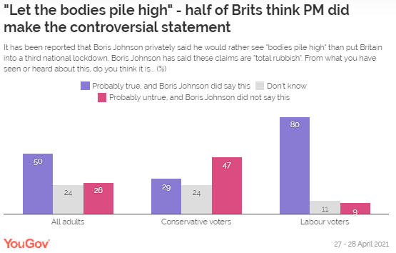 the remainder (24%) undecided. (YouGov UK) April 30, 2021 Around Half Of