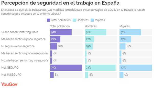 Of Spaniards Respond To Feeling Safe At Work Thanks To The Measures Adopted