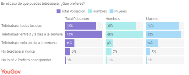 that they would prefer to telework 2 or 3 days a week, 37% would like this