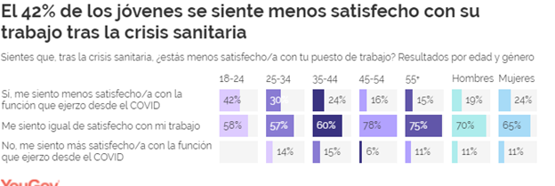 between 18-24 years old (42%) report feeling the least satisfied with their