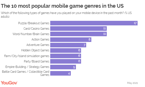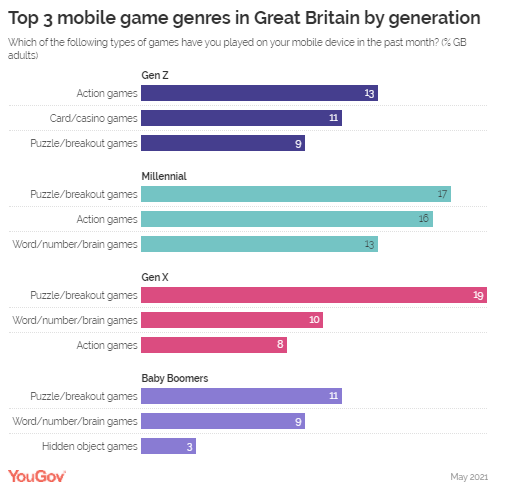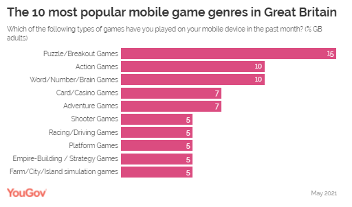 Great Britain Interestingly, the five most popular mobile game genres in the UK