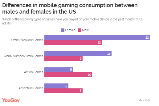 Adventure games (7%) featured in the top five as well. There were significant differences in mobile gaming genres consumed