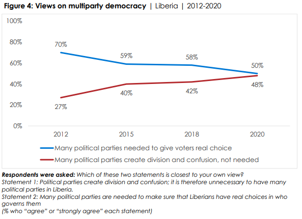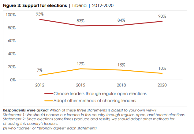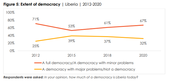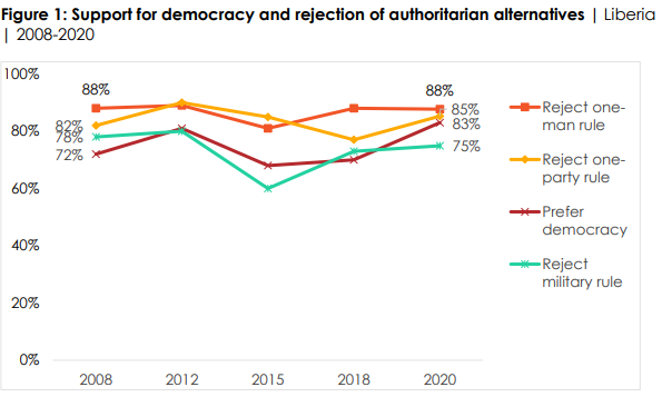 A Preference For Democracy In Liberia Over Any Other Type Of Political System Has Increased From 72% In 2008 To 83% In 2020. 22