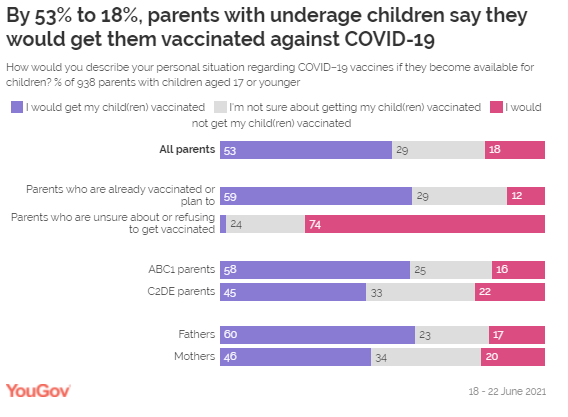 By 53% To 18%, Parents With Underage Children Say They Would Get Them Vaccinated Against Covid-19. 32