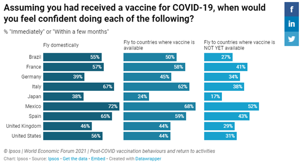 • 17% in Japan to 52% in Mexico for flying to other countries where the vaccine is not yet available.
