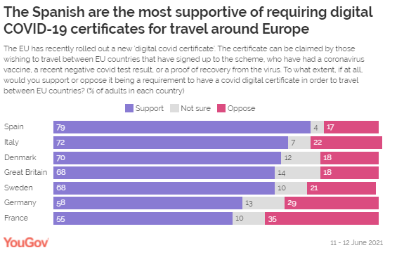 79% Of Spaniards Support EU Digital COVID Certificate For Travel, Support Is Lowest In France (55%) 66