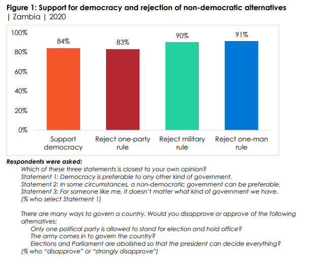 Zambians (84%) Prefer Democracy To Any Other Form Of Government Six