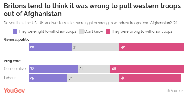 or not Britain was right to withdraw forces from Afghanistan, with 39% saying