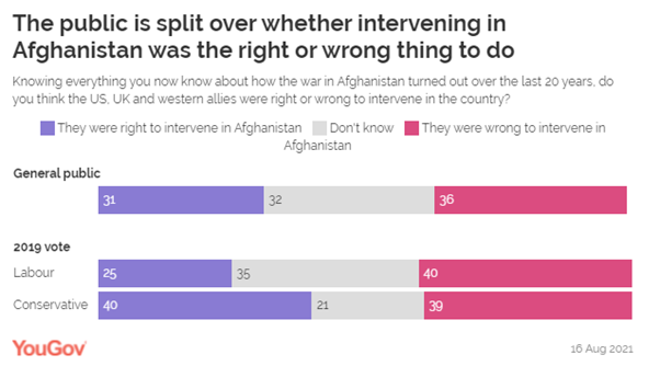 and sanctions against the regime and humanitarian aid. (Ipsos MORI) 19 August 2021 Source: https://www.ipsos.com/ipsos-mori/en-uk/britons-are-split-over-afghanistan-military-withdrawal SUMMARY