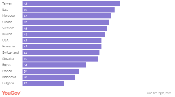 Bulgarians (41%), Croatians (38%) and Greeks (36%) are also among the