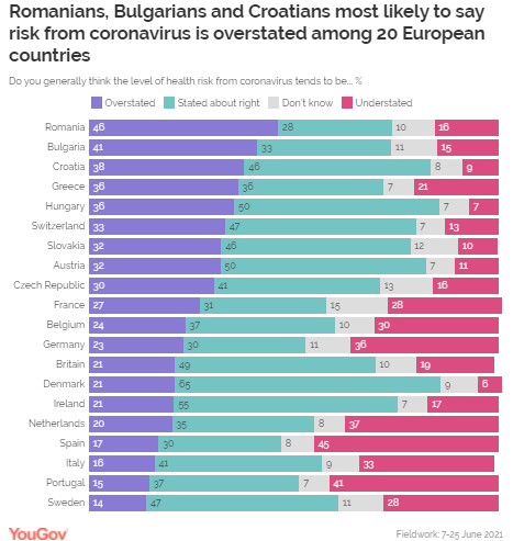 another one in five (19%) say they’re understated. Swedes and the Portuguese are the least likely to believe the risks