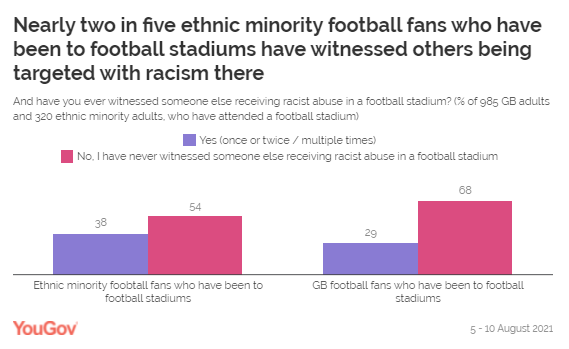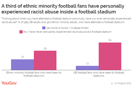 A Third Of Ethnic Minority Football Fans Have Experienced Racism At Stadiums. 27