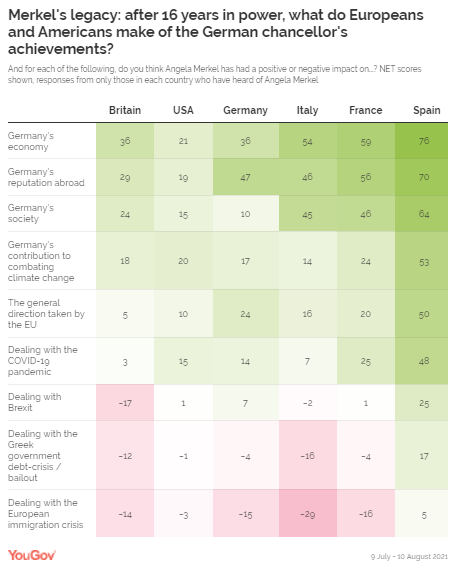 On the eve of her departure, YouGov has looked at Merkel’s reputation in key European nations and the US, and what people make of her legacy.