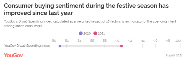(80.96), indicating a recovering appetite to spend among urban Indians. (YouGov India) September 7, 2021 Three