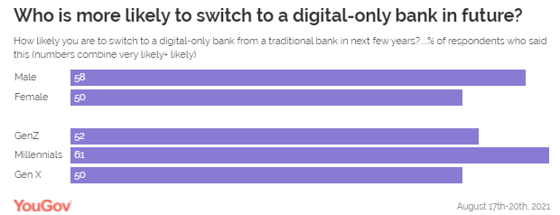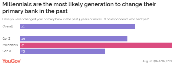 changed their primary bank in the past (41% vs 23%). Among the genders, men
