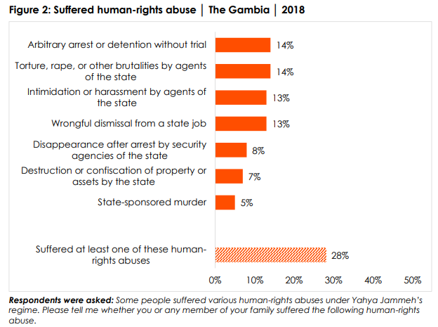Member Of Their Family Suffered Human-Rights Abuses Under Jammeh’s Regime Almost three-fourths (73%) of Gambians say