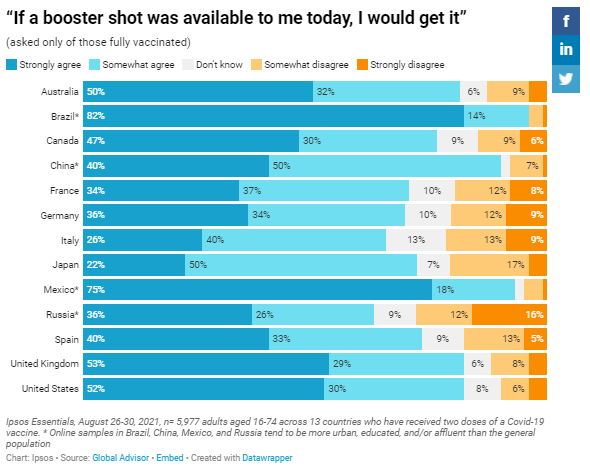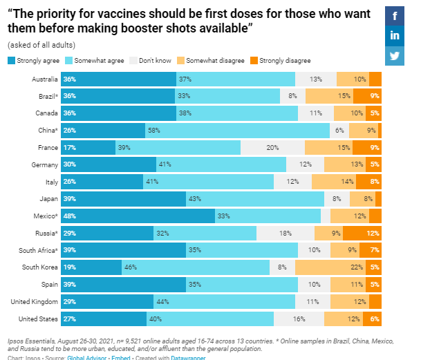 before making booster shots available. The survey was conducted August 26-30, 2021 on Ipsos’ Global Advisor
