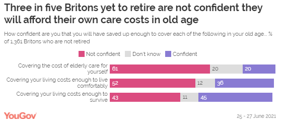 A third of the public who have not retired (36%) don’t think they’ll ever be able to afford to retire completely. Those in the C2DE demographic group – many of whom do manual work – are much more likely than those in the ABC1 social group – who tend to hold managerial or administrative positions – to believe they won’t have enough money to give up work later in life (45% to 31%). Only two in five (41%) non-retired people believe they either already can or will afford to give up work.