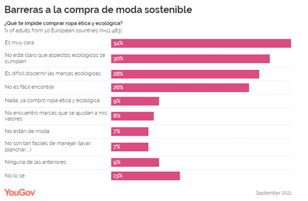 brands are ecological. (YouGov Spain) Source: https://es.yougov.com/news/2021/11/09/comprar-moda-sostenible-es-importante-para-cada-2-/ 715-716-43-39/Polls Global: Fan Interest In The T20 World Cup In Five Key Markets