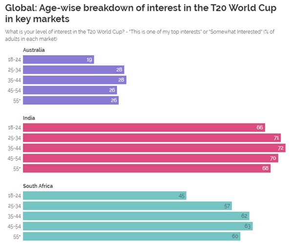 (70%) say that the T20 World Cup is one of their top interests or that they