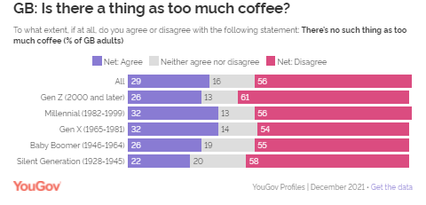 too much coffee, three in ten Brits agreed, while 16% are undecided. But