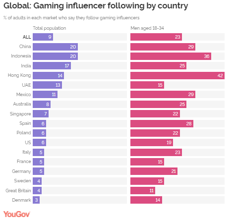 (20%) follow gaming influencers. India (17%), Hong Kong (14%) and UAE (13%)