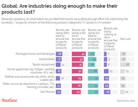 industries are doing enough to ensure the longevity of their products. Overall, packaged foods and beverages wins the biggest vote of