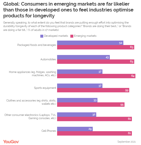 durable. That figure rockets up to 61% among consumers in emerging markets. That is the case across sectors, which could indicate that industries