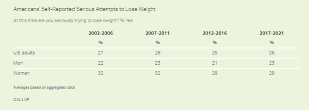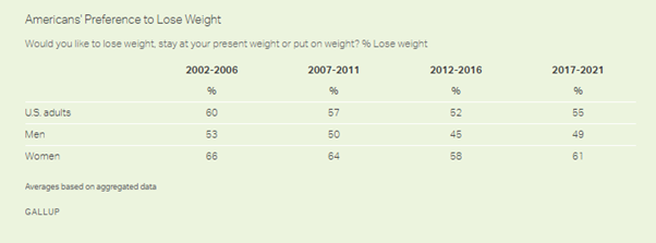 desire to lose weight between 2017 and 2021 is up slightly from the previous