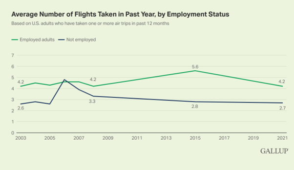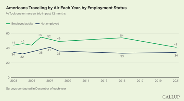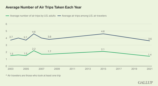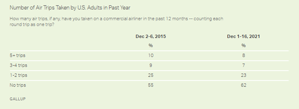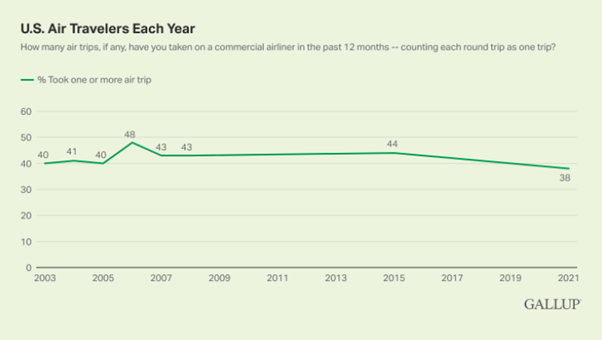 Of Adults Traveled By Air In 2021 In U S Versus 44% In 2015 Three-In-Ten