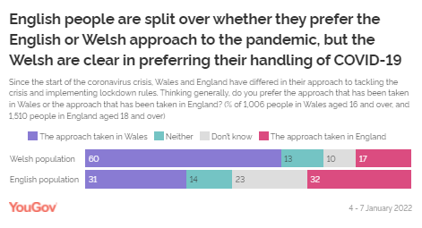 46% of whom back the rule of 6 outside and 47% who oppose it. Despite a preference for their way of doing things, only 47% of Welsh