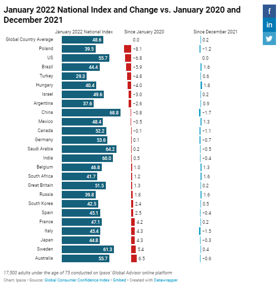 point) despite the rapid spread of the Omicron variant across the world. The Global Consumer Confidence Index is the average of 24 countries’