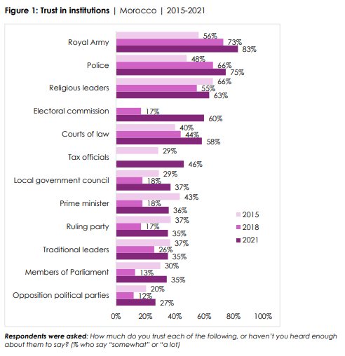 Political Actors While fewer than four in 10 Moroccans say