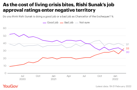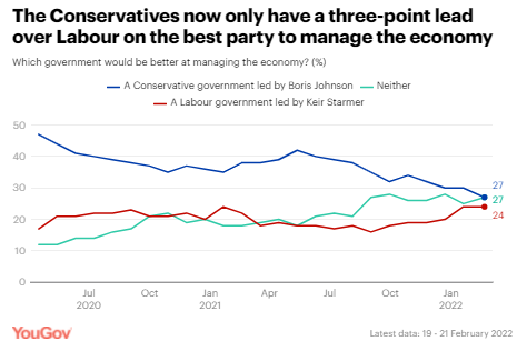 a price decrease. (YouGov UK) February 22, 2022 Labor Almost Close The Gap On The Economy As Sunak’s Job