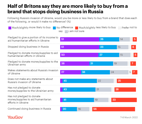 to 68% in March 2022*, and in Germany from 54% to 64%. Note: this question used a five-point scale,