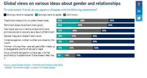(24%) are almost as likely as men (27%) to put the onus on women’s own