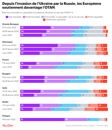 (YouGov France) March 16, 2022 Source: https://fr.yougov.com/news/2022/03/16/OTAN-evolution-perception-des-europeens/ |