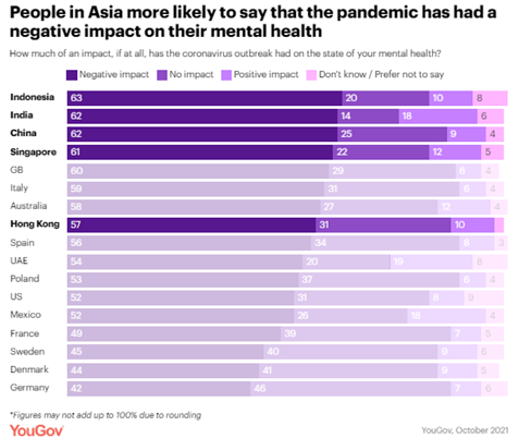 pandemic has had an adverse impact on their mental health. Data from the study shows that the numbers reporting a negative