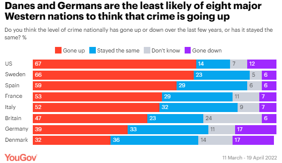 (53%) and Italy (52%), say crime has gone up nationally. Almost half of
