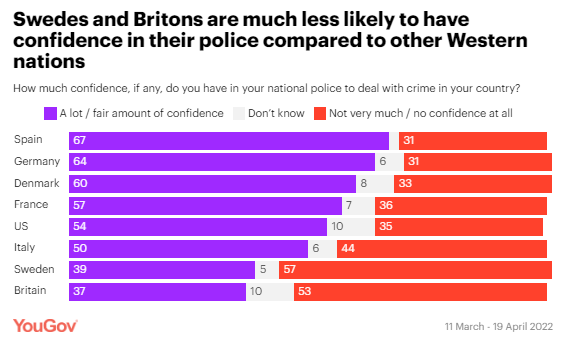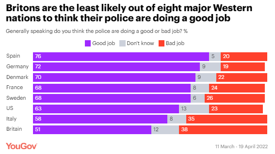 their nation’s police, with the US having the most at 62%. (YouGov UK) May 13, 2022 |