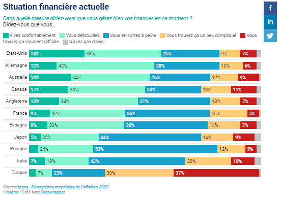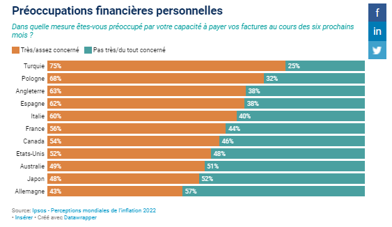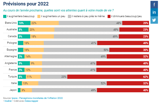 “ Economic optimism has been declining in Europe and the United States since mid-2021, and today less than half of the public in six out of ten countries say they feel financially secure. But if the public expects more inflation and price hikes in 2022, the idea of ​​a ‘new normal’ has yet to sink in. That means further inflationary shocks are likely – so far , relatively few people around the world are asking for pay raises or seeking better paying jobs at a new company. But as the cost of living crisis deepens, we expect to see this change, with the likelihood of a wage-price spiral.This is only the beginning.declares Ben Page, CEO of Ipsos